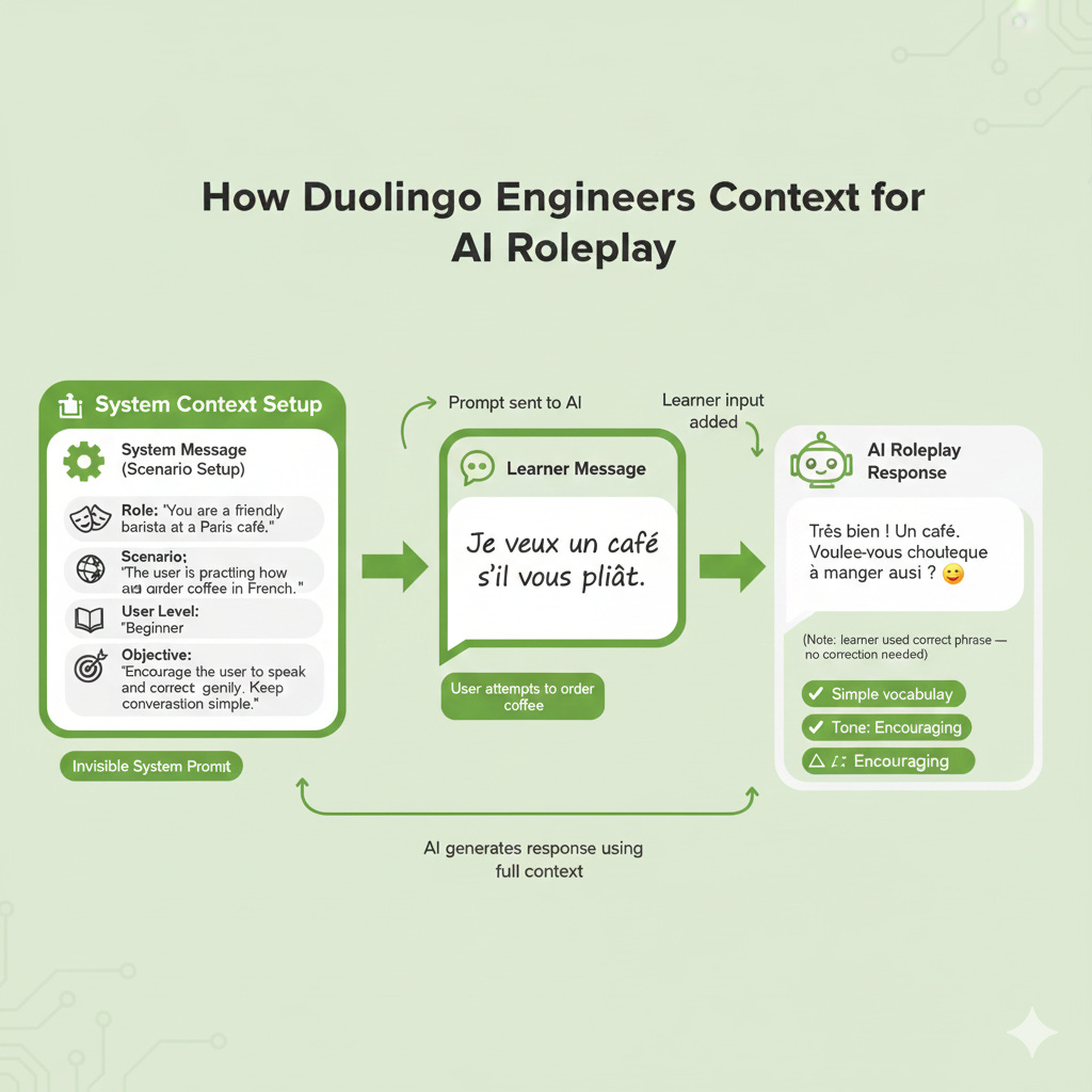 For the “Explain My Answer” feature (where the AI explains a learner’s mistake or confirms a correct answer), imagine the prompt structure needed. Likely, it includes the exercise question, the user’s answer, the correct answer, and then an instruction like: “Explain why the learner’s answer is correct/incorrect in a friendly tone and give a helpful tip”. Providing all that context in a structured format is crucial so that GPT-4’s explanation is accurate and relevant. If the prompt only said, “Explain this,” the model might hallucinate or give a generic response. Duolingo reports that they spent months refining these prompts with OpenAI’s help, and they have humans reviewing outputs for quality and tone. The payoff is a feature where the AI feels like a knowledgeable, encouraging tutor - because the context fed to it frames it as one.